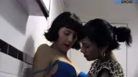 In the dark and steamy bathroom, the two beautiful, sensual brunettes stood beside the gleaming sink, their hands gliding over each others bodies, feeling every curve and soft spot through their tight outfits.The first girl, with her smooth, tiny body and tiny ass, looked eager to explore her lover, while the second one, taller with fuller features and a plump booty, had a hungry smile that said she was ready for anything.Their eyes locked, a promise of passion and excitement in their gaze as they started to unclothe each other slowly.As the first brunette gently stroked her lovers breasts through the outfit, the second one could feel her own nipples harden under the touch.Her fingers moved with a practiced grace, sliding the other womans skirt up to reveal smooth, wet labia just waiting to be touched and explored.The first girl began to lick at her lovers clit through the fabric, creating wet, juicy sounds as she tried to coax the brunette towards an orgasm, feeling a familiar throb between her own legs.The second girl spread herself wider for her lover, lifting her leg onto the sink so that the first brunette could slide her tongue up and down her womanly parts with expert precision.The sound of moans filled the bathroom as their fingers explored each others labia and clits in an erotic dance, one that had both women flushing a deep pink.Each stroke of tongues and fingertips sent shivers down their spines, their horny desires reaching new heights.The girls fingers began to work in tandem, fingers stretching out the other womans pussy lips and probing her depths with a delicate touch that made every muscle clench in response.Their bodies pressed together, and their eyes locked once more as they both reached for an orgasm.The brunettes kissed each other passionately, tongues intertwining and exploring as their fingering session continued to escalate.As the second girl came closer to climax, she began to buck her hips against her lovers mouth, grinding herself against it with wild abandon.Her moans grew louder, more guttural as the first brunette sucked and licked at her until she could hold back no longer and her orgasm washed over her in waves of pleasure.The second woman, overcome by the power of this erotic experience, came close behind, her ass clenching tightly against her lovers fingers, her smile wide with joy as they shared their passion together.Finally, exhausted and completely satisfied from the bathroom lesbian fingering session, both brunettes looked at each other and smiled, knowing that this was only the beginning of a beautiful love affair fueled by sensual exploration and unbridled erotic desire.